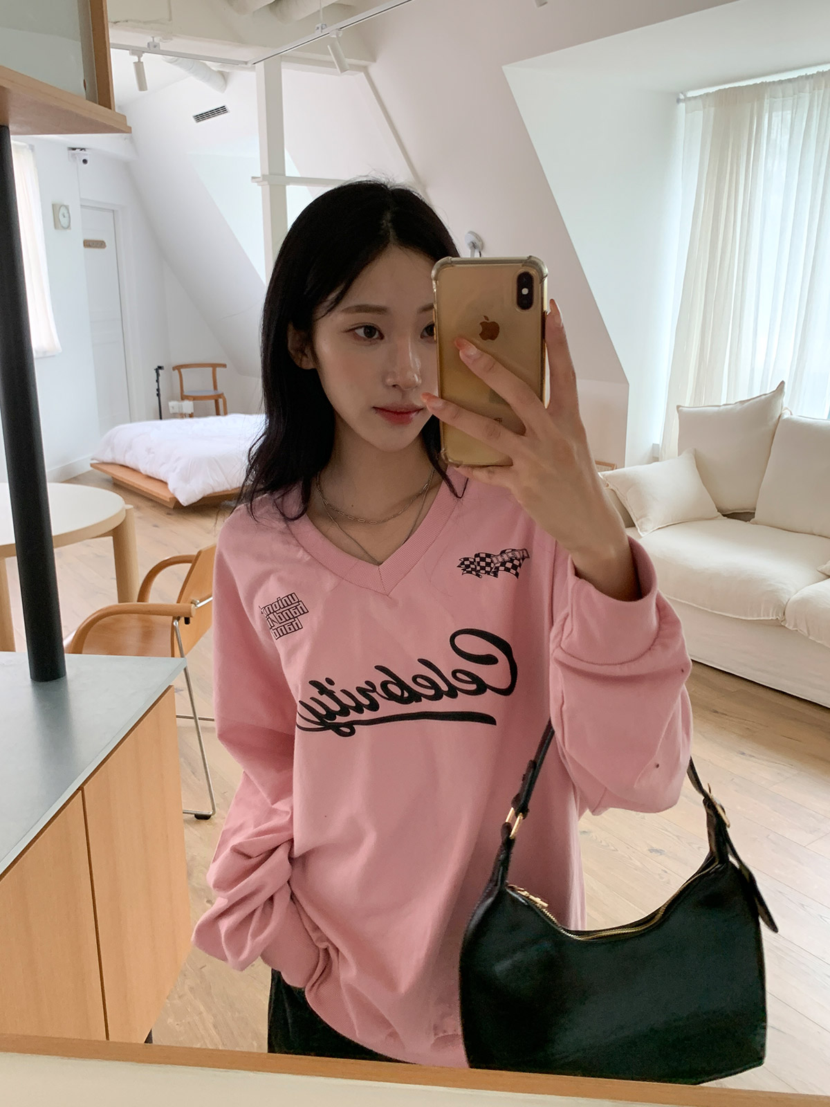스포티한 무드의 레터링이 들어가있어 발랄한 스타일로 즐기기 좋으며 넉넉한 오버핏으로 여리여리히게 활용할 수 있는 맨투맨